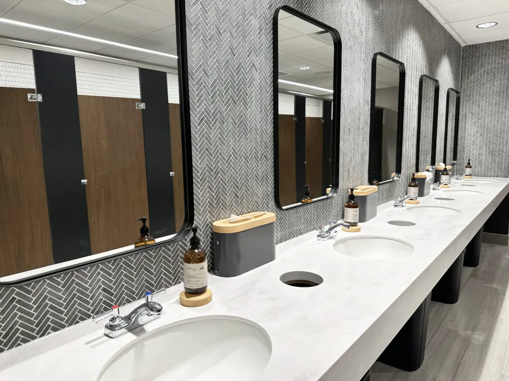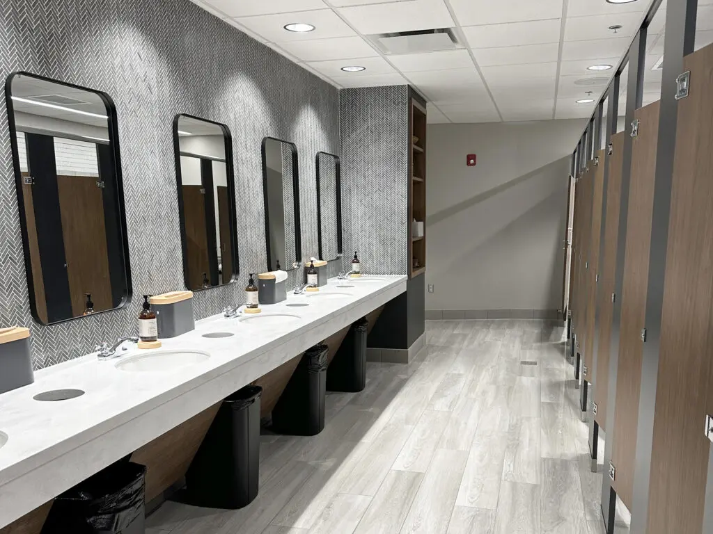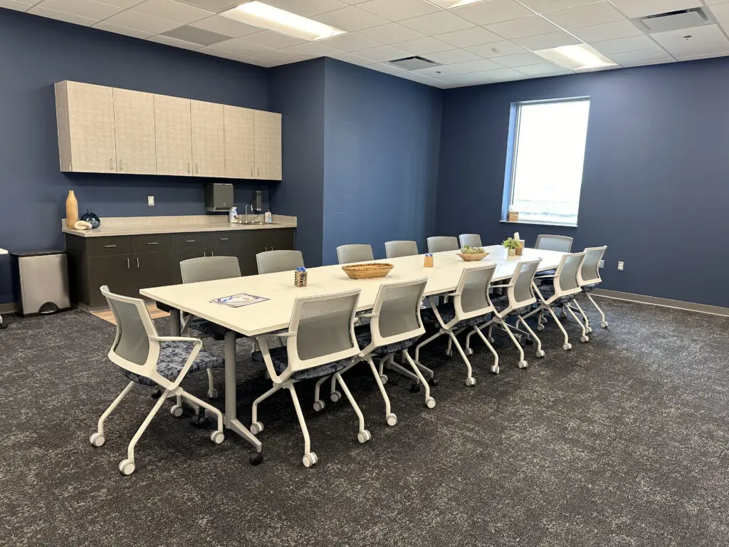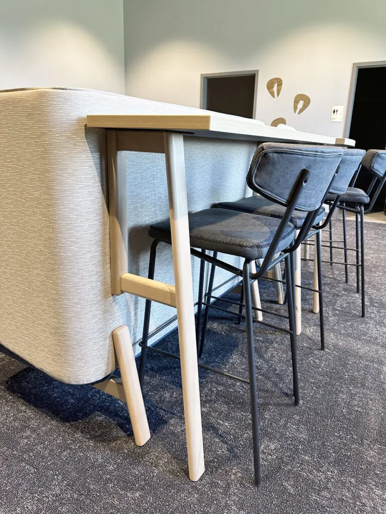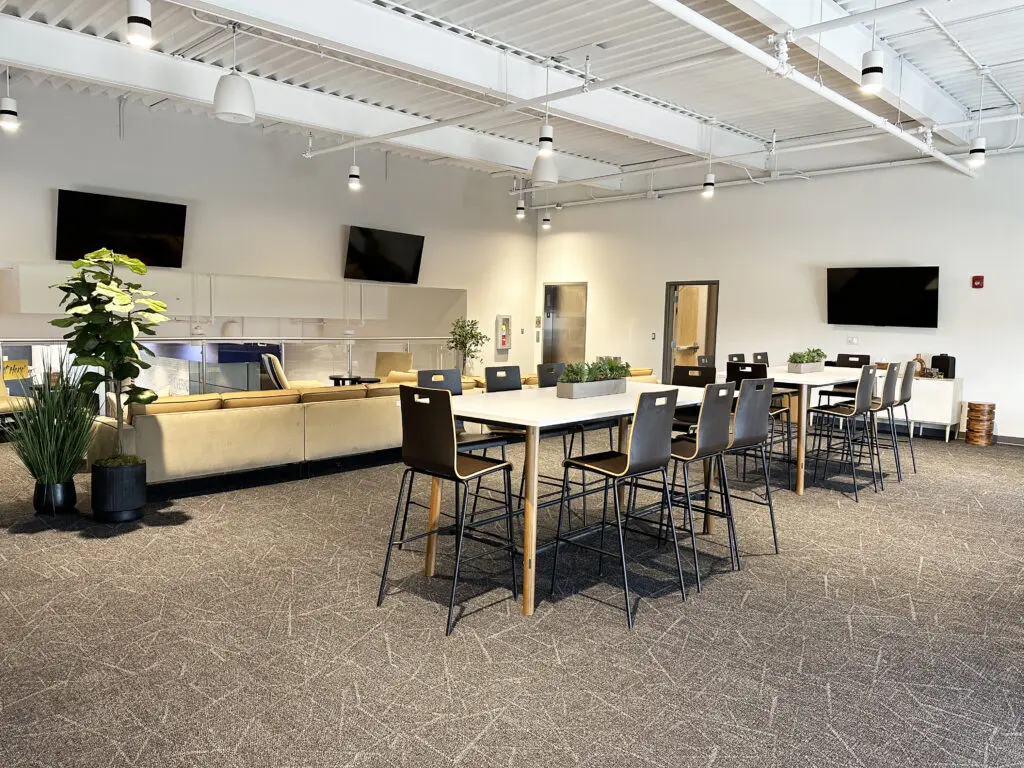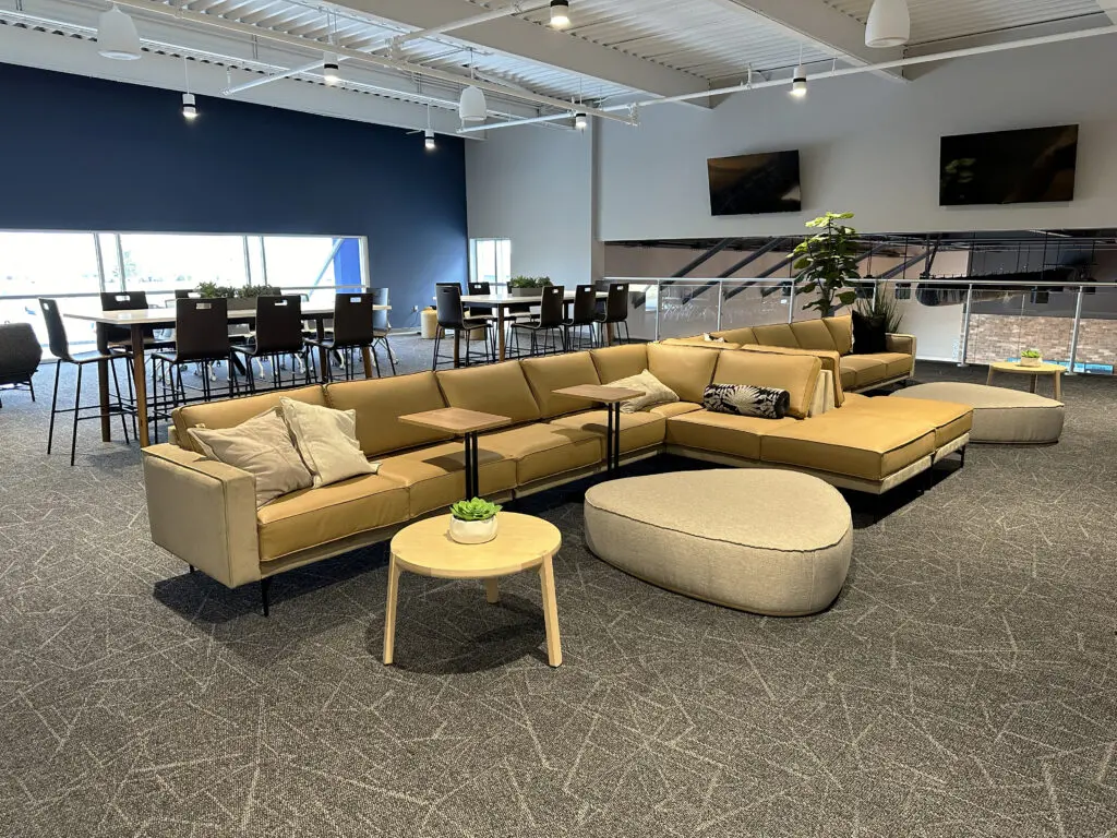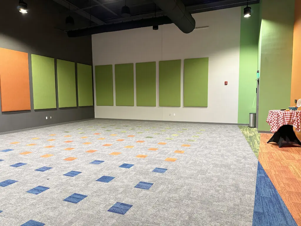 After years of continued growth at their Oakford campus, Abundant Life Church expanded into a new building across the street. The building houses a 1,300-seat Auditorium, children’s wing, full-service Café, and space for future offices. Pastor Charlie’s passion to bring life, love, and value to everyone, everywhere, every day is evident in the design of the building. There are places for everyone to feel comfortable, whether that’s serving in the children’s ministry on a Sunday morning or ministering to the community through the Café which gives all proceeds to local charities. The desire for a comfortable yet classy building was achieved by humanizing the scale of the tall ceilings with furniture elements and carpet patterns. The connections between finishes, furniture, and signage highlight Abundant Life’s trademark colors and the warm wood tones soften the space.