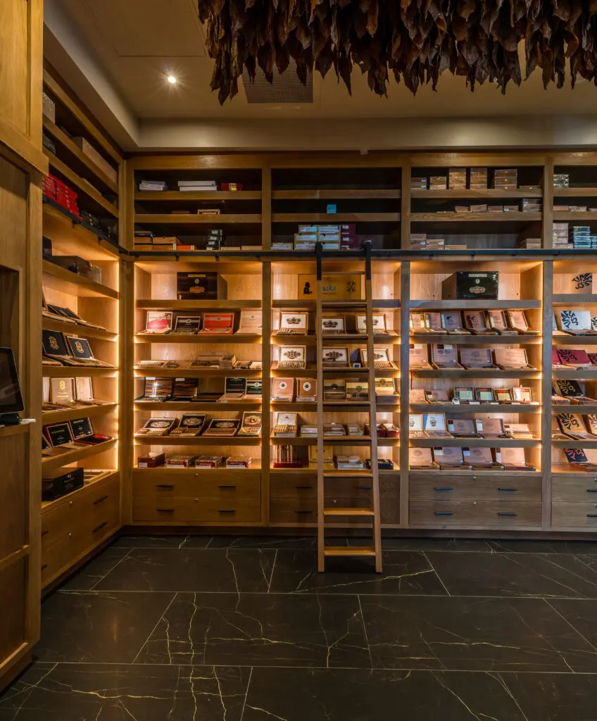 Preserved tobacco leaves and a classic library ladder make the humidor experience one filled with sophistication and charm. A state-of-the-art mechanical system exchanges air 6 times every hour, further enhancing the guest’s enjoyment.