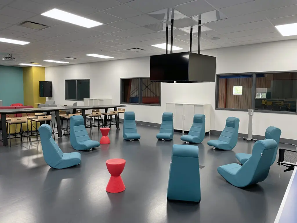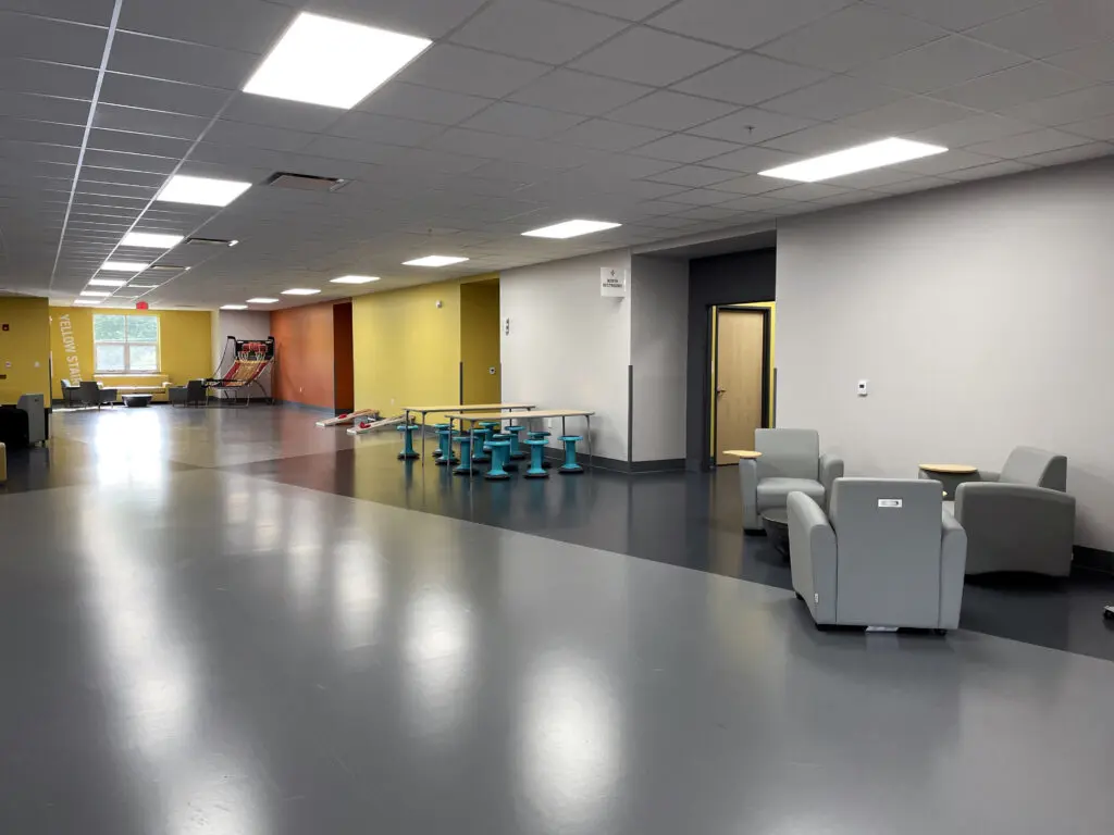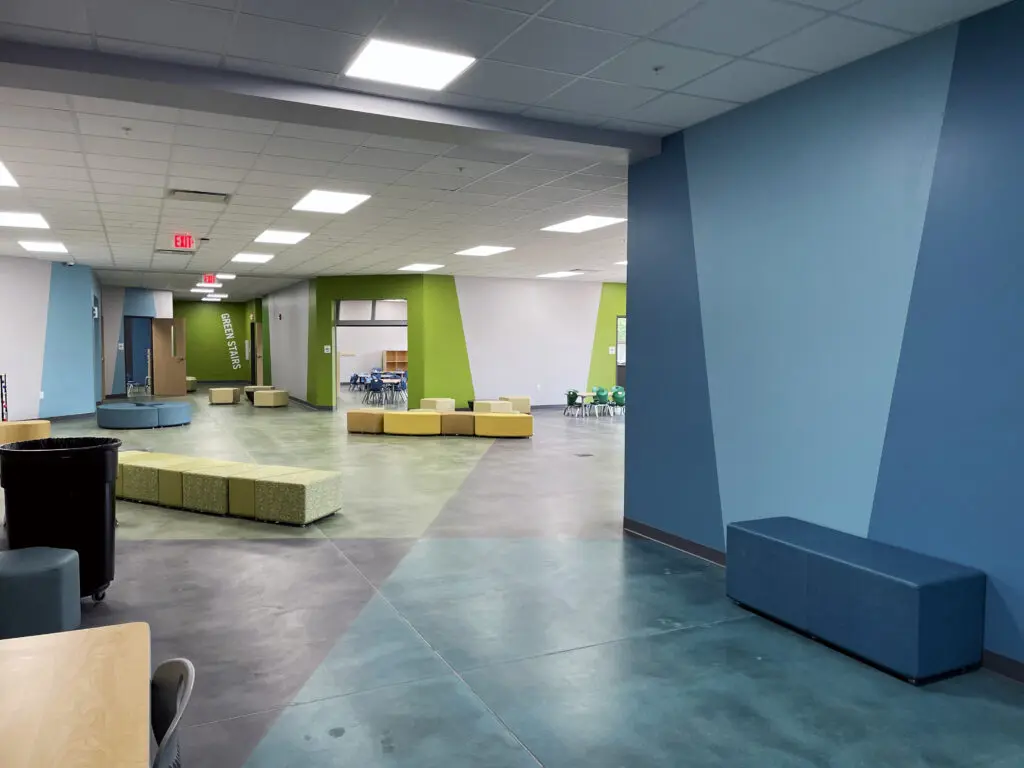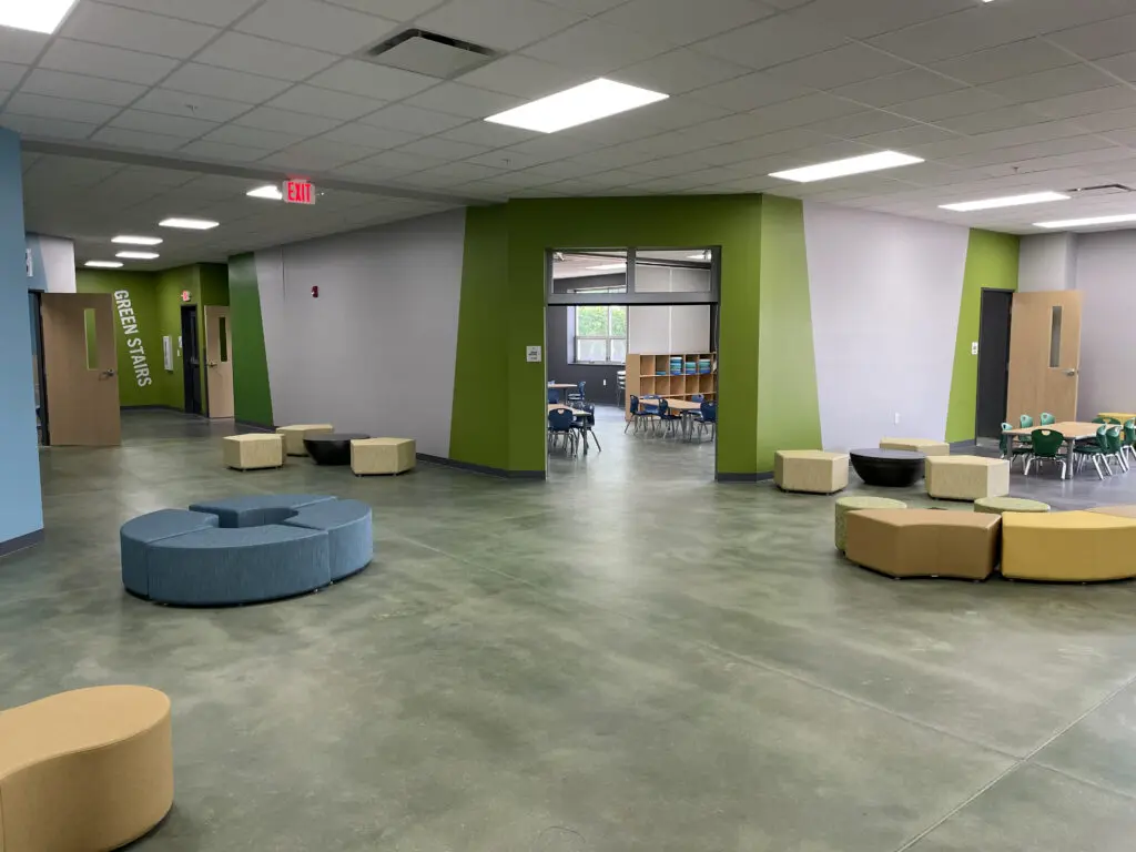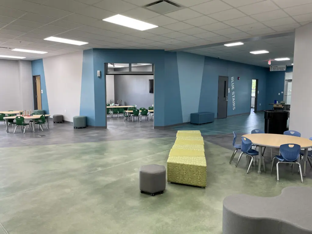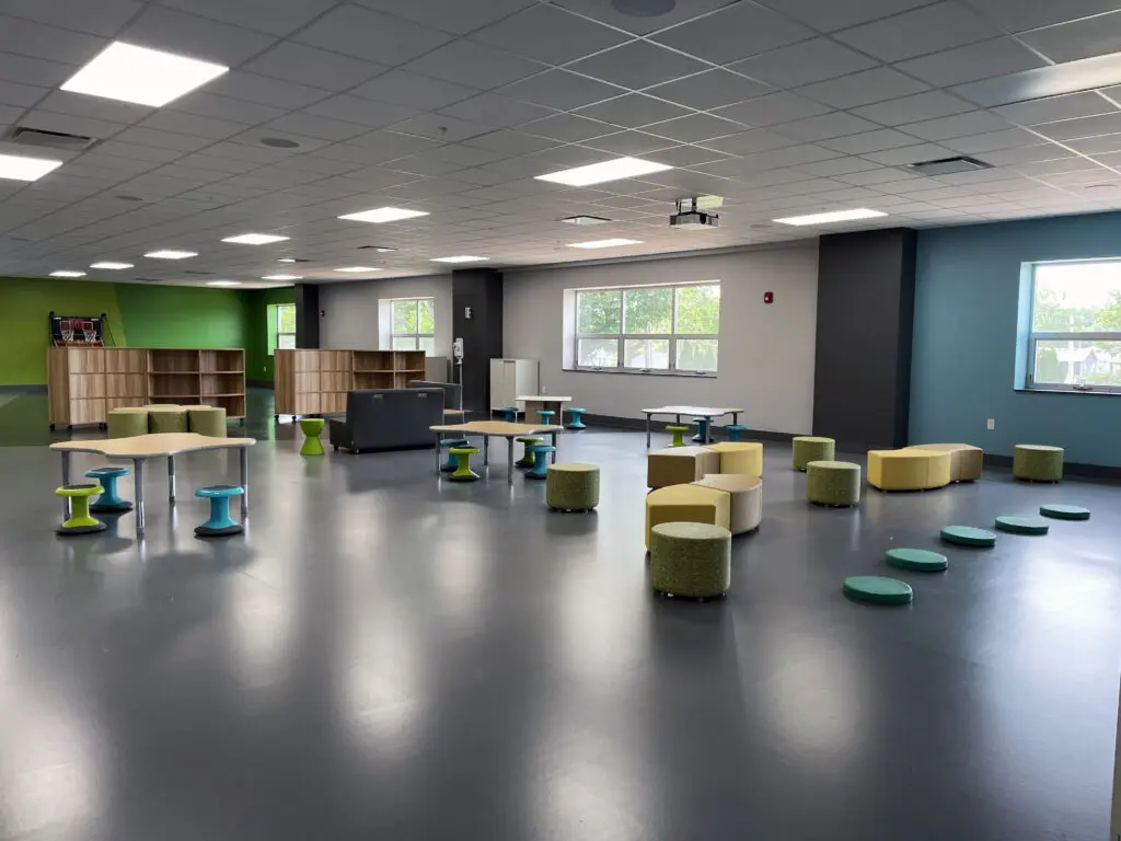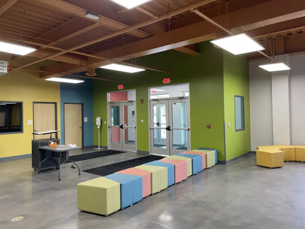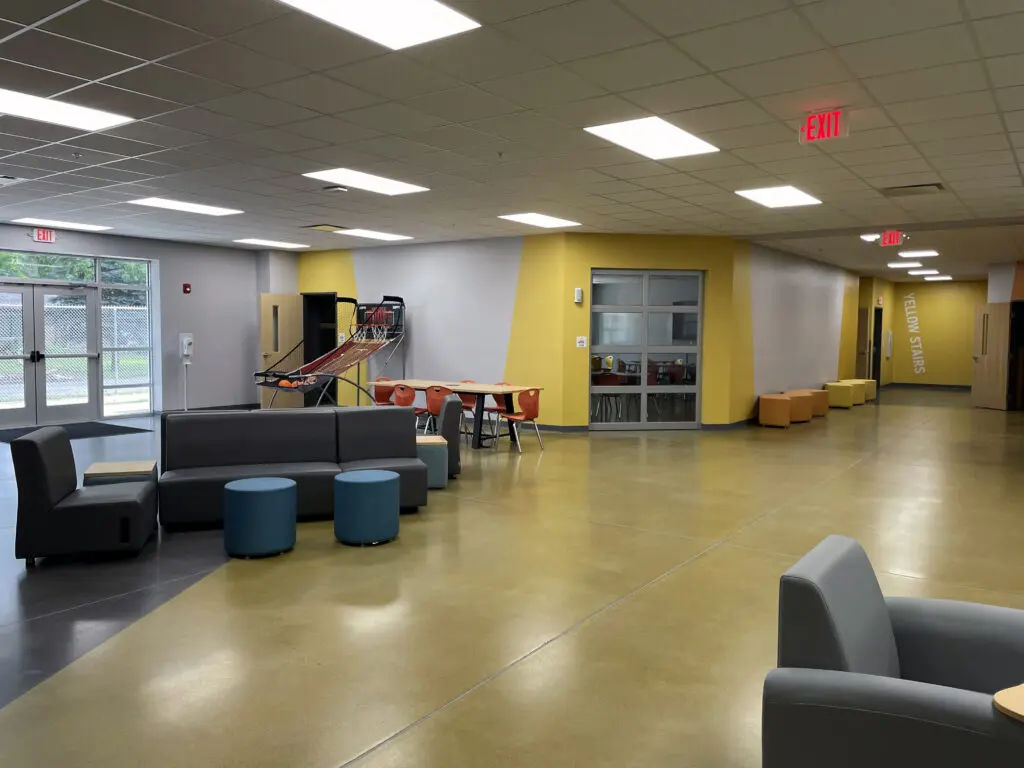 Spaces are designed with different age groups in mind. The pre-school, middle school, and high school spaces have different features and color schemes but are all focused on one thing – giving children and youth a safe place to gather.